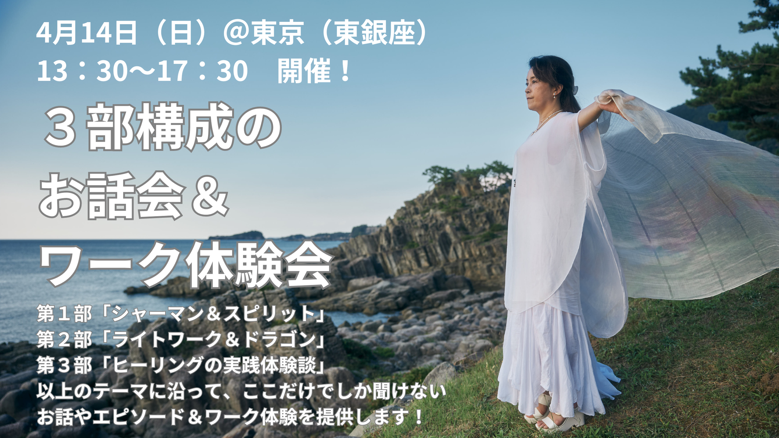 4月14日(日)13:30~17:30、東京会場(東銀座)で開催する「3部構成のお話会&ワーク体験会」のご案内です!