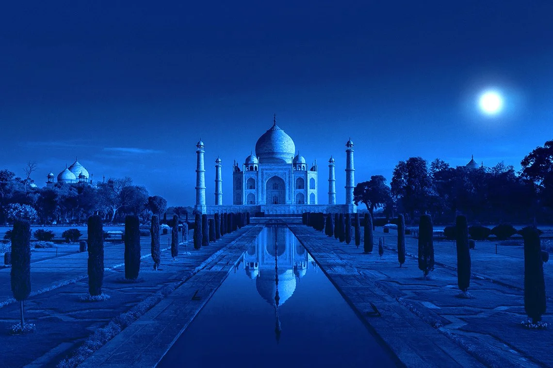 白い大理石のタージマハールが、満月の光に浮かび上がるその姿は、その場に行ってみることでしかできない、ある特別な経験を促します。